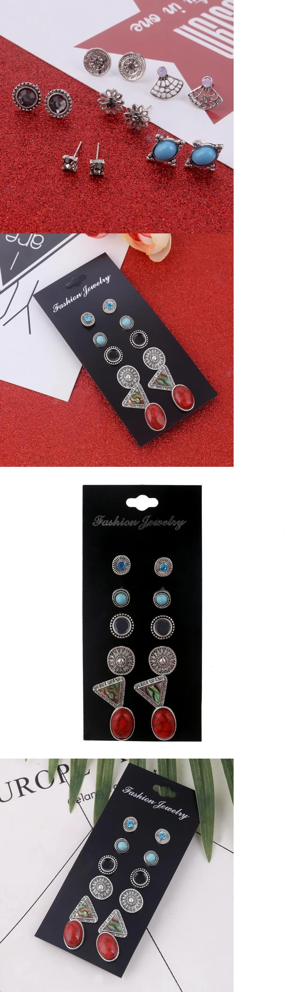 送料無料 Clic 6 ペア/セットラインストーンクリスタルイヤリング模擬パールストーンスタッドイヤリングセット女性シルバーカラー Brincos 真珠 指輪 銀 人工 AE155655554058845416