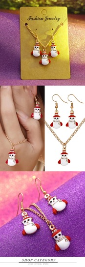 送料無料 ZOSHI かわいいクリスマスジュエリーカラフルなエナメルヘラジカ雪だるまペンダントネックレスロングイヤリング女性ゴールドメッキジュエリーセット レース 大人ガーリー スウィート キュート カジュアル 指輪 AE1556555528986207298