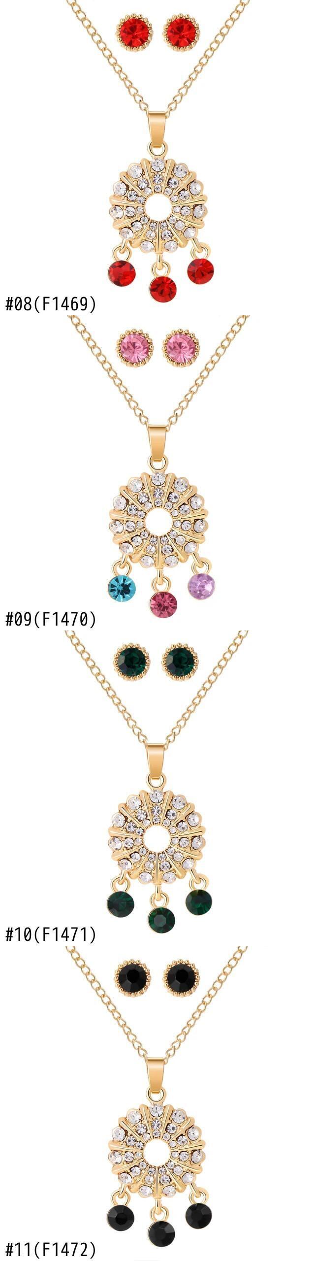送料無料 ZOSHI カラフルなオーストリアのクリスタルペンダントネックレスイヤリングセットゴールドカラーブライダルジュエリーセット女性 レース 指輪 AE1556555571837399080