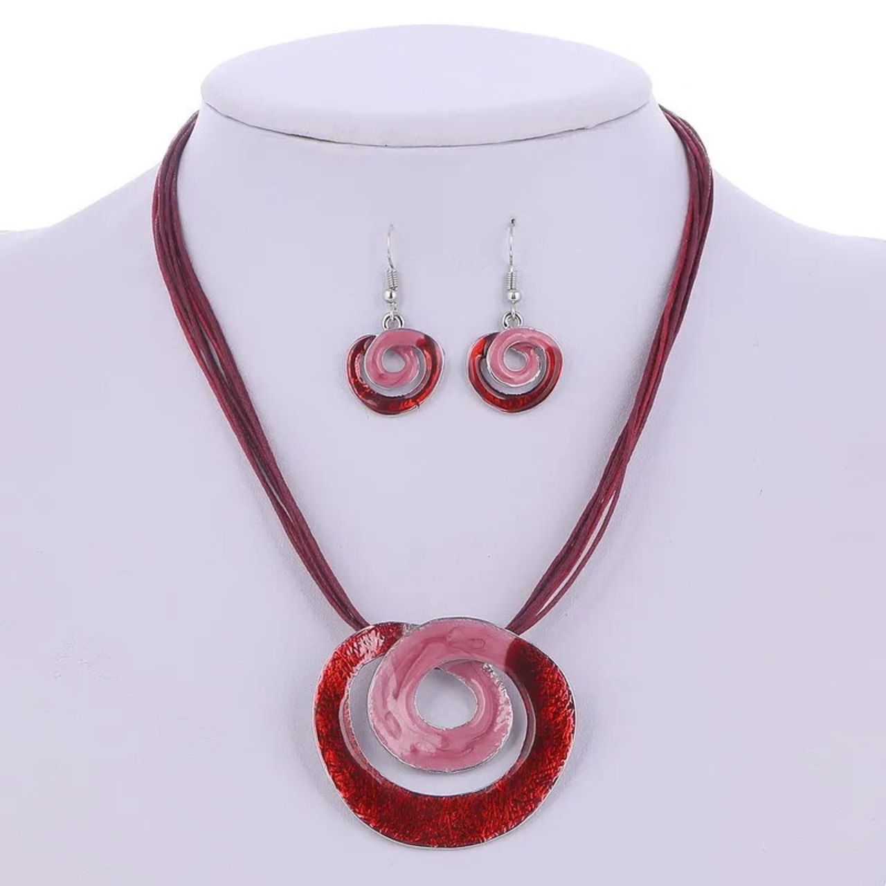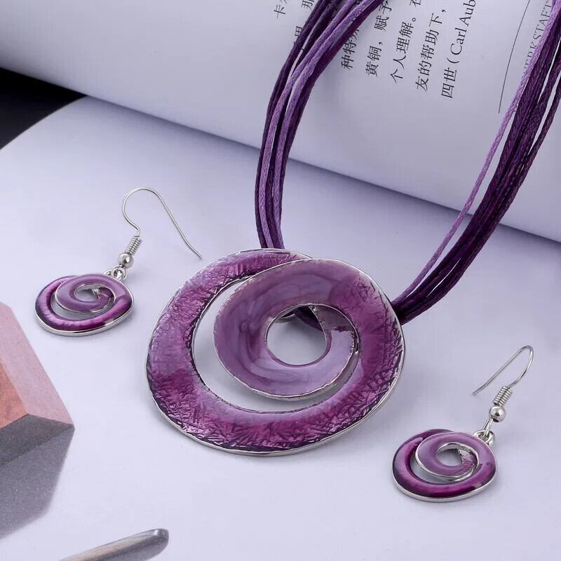 送料無料 ボヘミアンエナメルジュエリーセット女性シルバーメッキカラフルな宝石ビッグラウンドサークルペンダントネックレスとイヤリングセット レース 指輪 銀 AE1556555545939255279