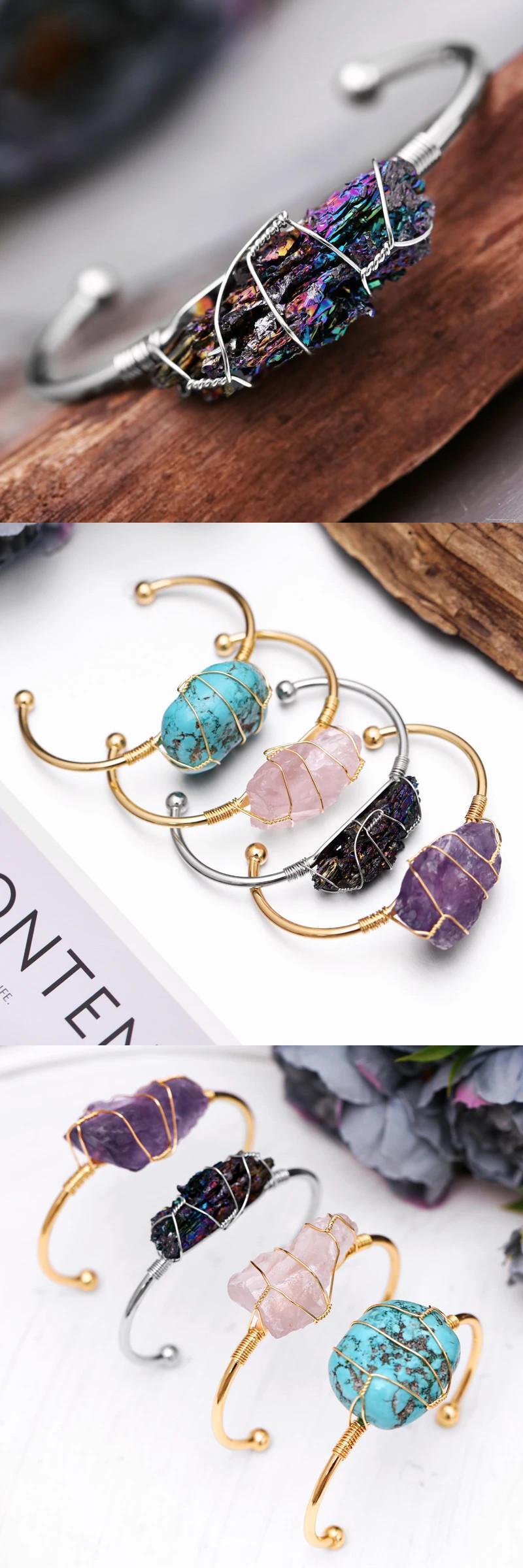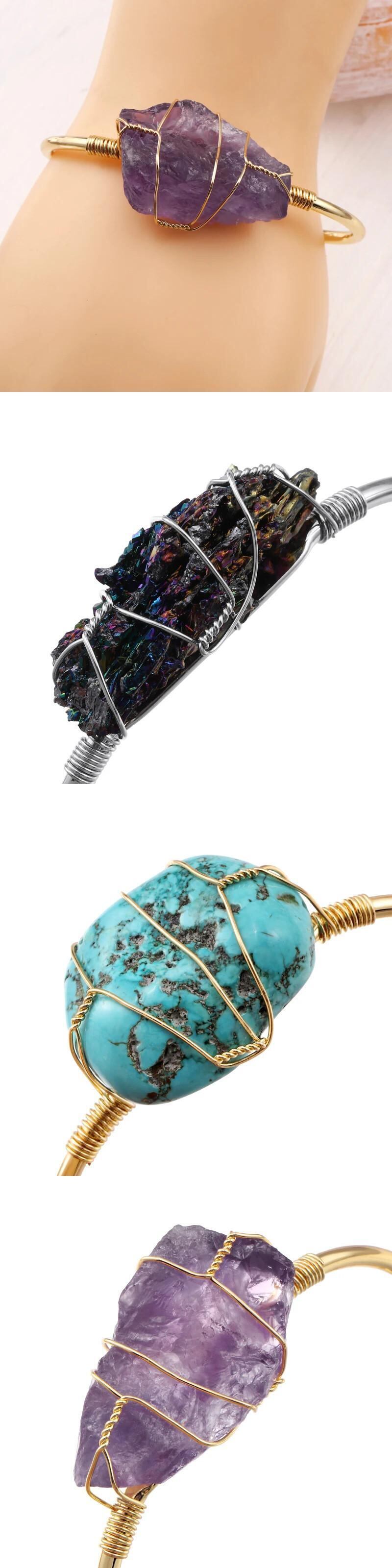 送料無料 ZOSHI チャクラ不規則な天然石カフバングルブレスレット女性手作り自由奔放に生きるブレスレット繊細なジュエリー ナチュラル AE1556555547886218291
