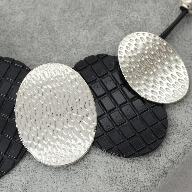 送料無料 チョーカー ネックレス オーバル メタル シート ペンダント コリアー ビジュー レディース ステートメント レザー ネックレス & ペンダント レース AE1556555594679765693