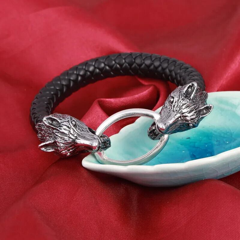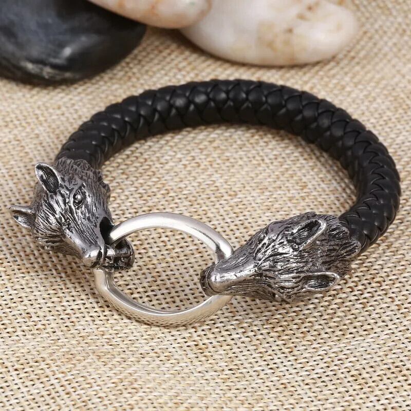 送料無料 ZOSHI メンズレザーブレスレットパンク男性ジュエリー男性オオカミチャームブレスレットバングルリストバンド Pulseira AE1556555581334592540