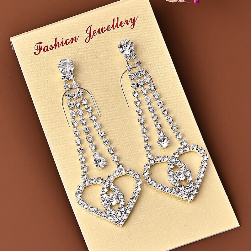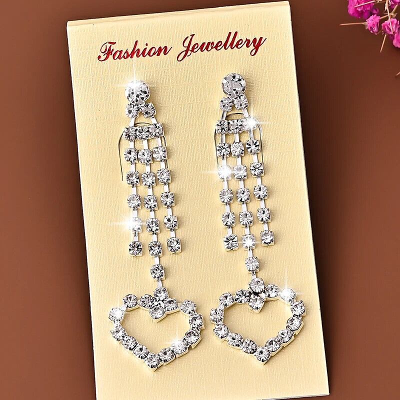 送料無料 ZOSHI 高級ラインストーンロングテルイヤリング女性ラブハートブライダルブラブライヤリングウェディングパーティージュエリー 指輪 AE1556555569381189468