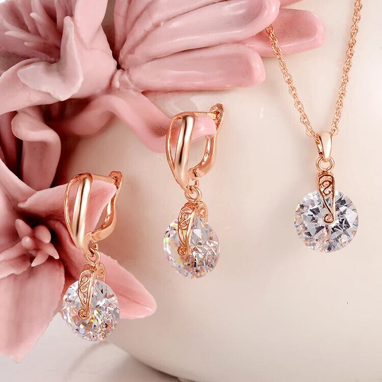 送料無料 ZOSHI グレードビッグクリスタルジュエリーセット女性ゴールドメッキ Cheins ネックレスイヤリング高級ブライダルウェディングセット レース 指輪 AE1556555584907787780
