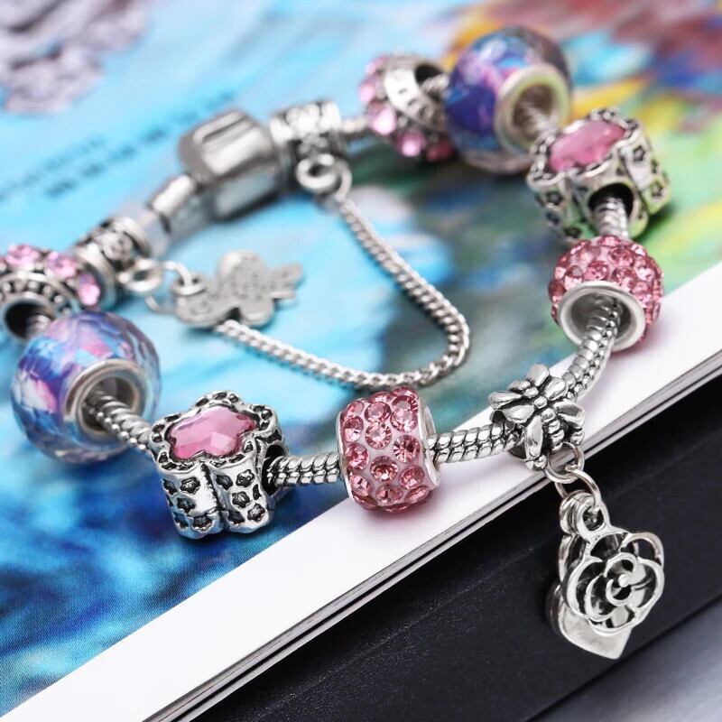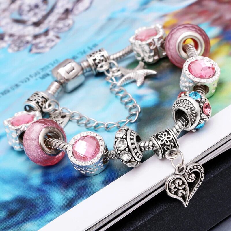 送料無料 ZOSHI 2020 スタイルラブジュエリーシルバーメッキチャームブレスレット & バングルクリスタルビーズトレンディなパンブレスレット女性 銀 AE1556555551302612803
