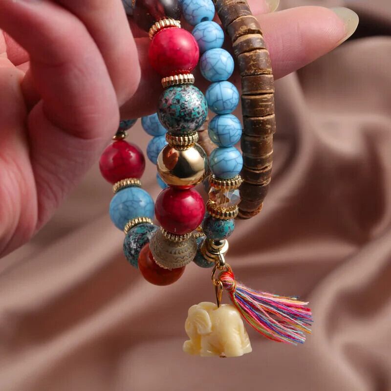 送料無料 ZOSHI チャームブレスレット女性ビーズ電話 DIY ボヘミアンジュエリー象ペンダントブレスレットギフト AE1556555575598281038