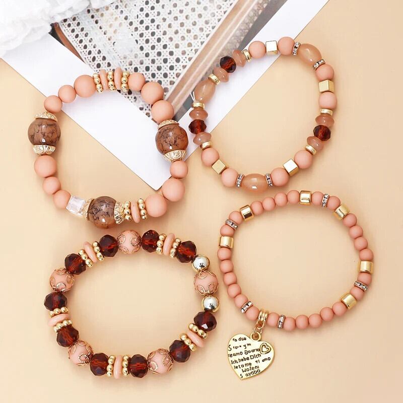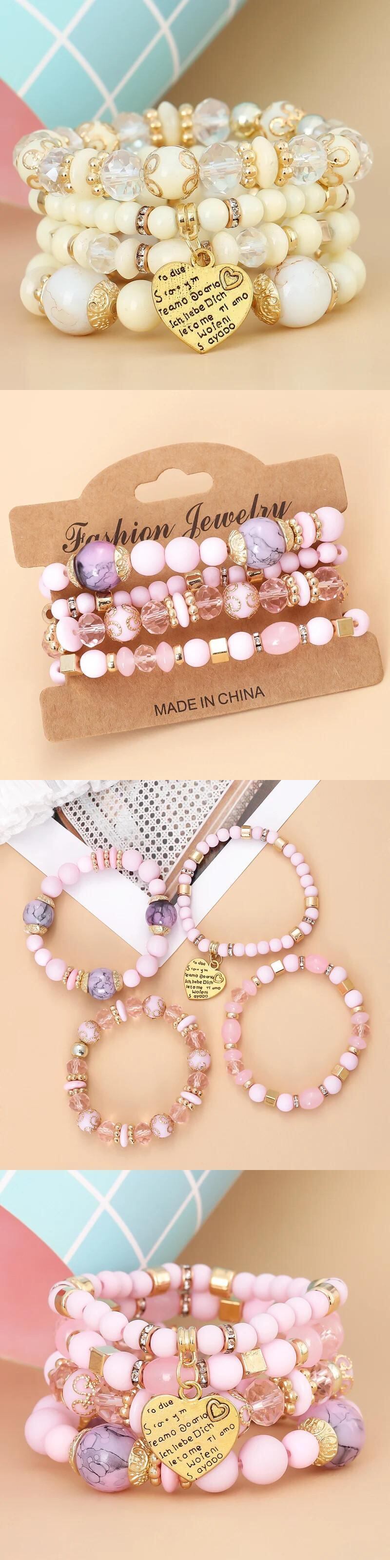 送料無料 ZOSHI ラブハートチャームブレスレットセット女性多層クリスタルストーン自由奔放に生きる電話ビーズブレスレットジュエリー マルチレイヤー AE1556555525249406874