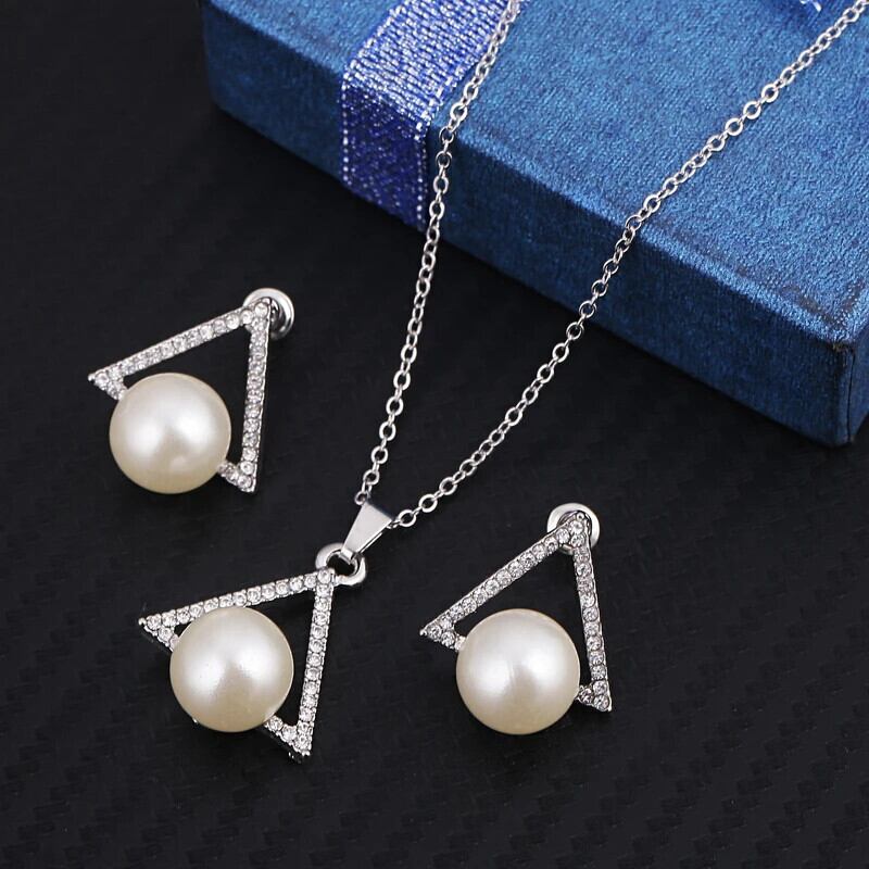 送料無料 ZOSHI アフリカブライダルシルバーメッキジュエリーセット女性模造真珠のネックレスイヤリングセットウェディングパーティークリスタルジュエリー レース パール 指輪 銀 AE1556555561986877843
