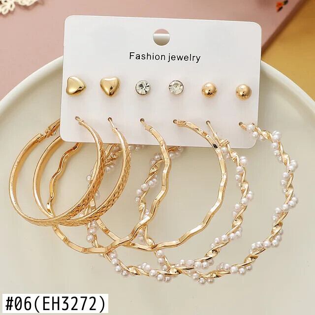 送料無料 ZOSHI パールフープイヤリングセット女性 2022 トレンディなゴールドメッキサークルイヤリング Brincos パーティージュエリー 真珠 指輪 AE1556555512086811135