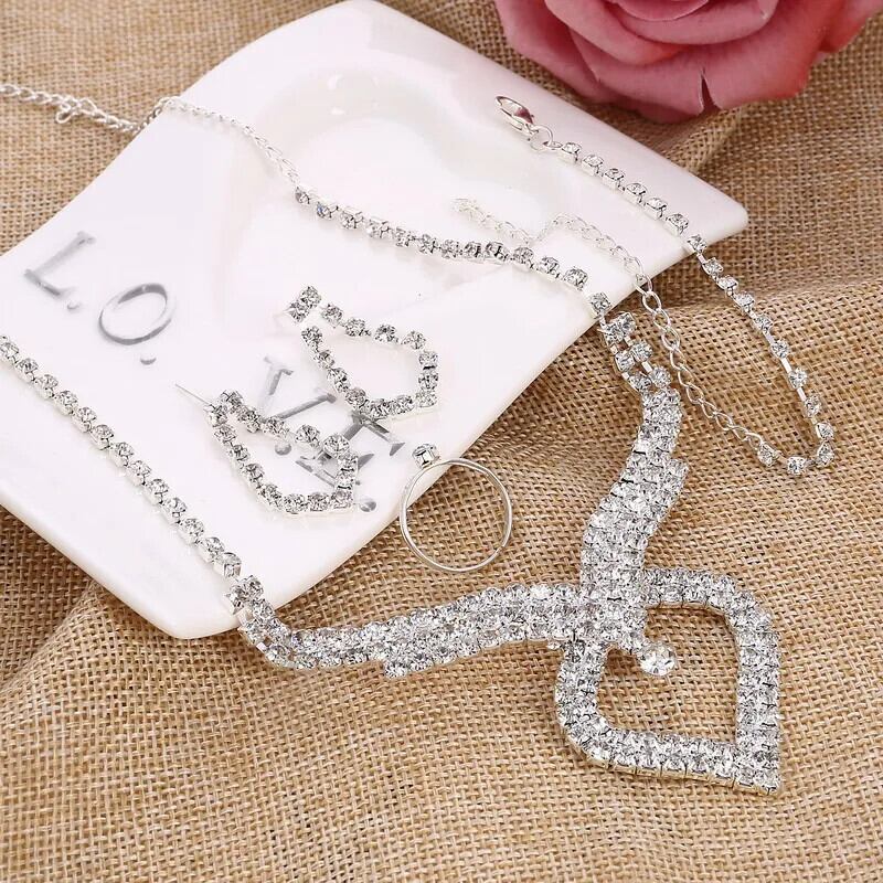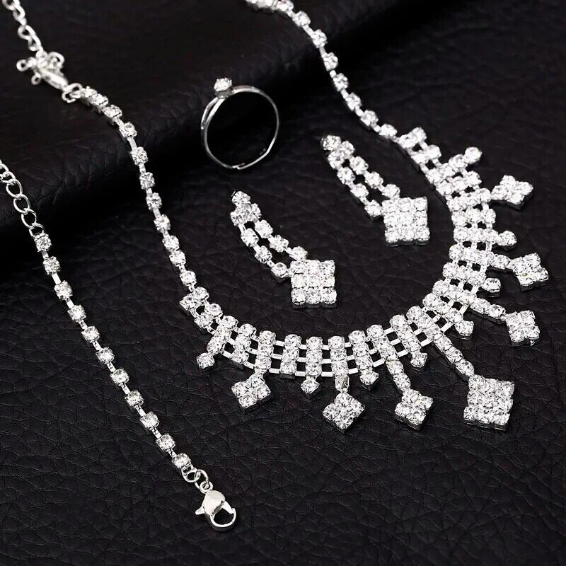 送料無料 ZOSHI シルバーメッキウェディングセット女性輝くラインストーンチョーカーネックレスイヤリングブレスレットリング 4 個のジュエリーセット レース 指輪 銀 AE1556555564846792048