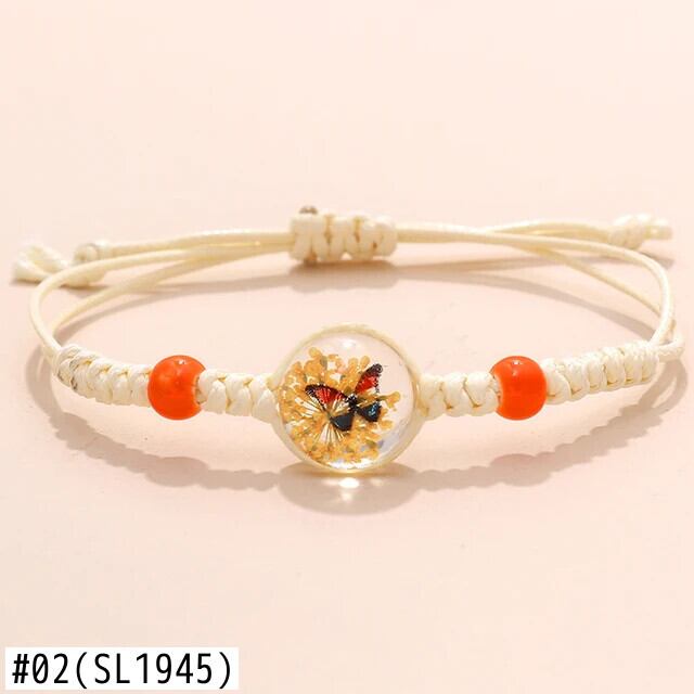 送料無料 ZOSHI 調節可能なドライフラワー蝶ブレスレット女性ガールズ透明クリスタルセラミックナイロンロープ手作りブレスレットギフト アジャスタブル フラワーデザイン AE1556555565959809
