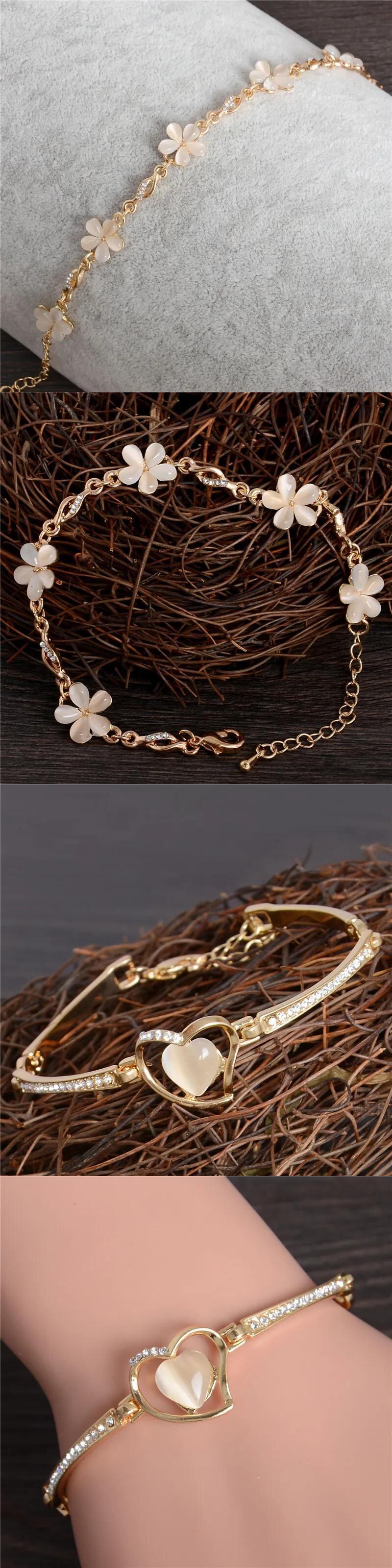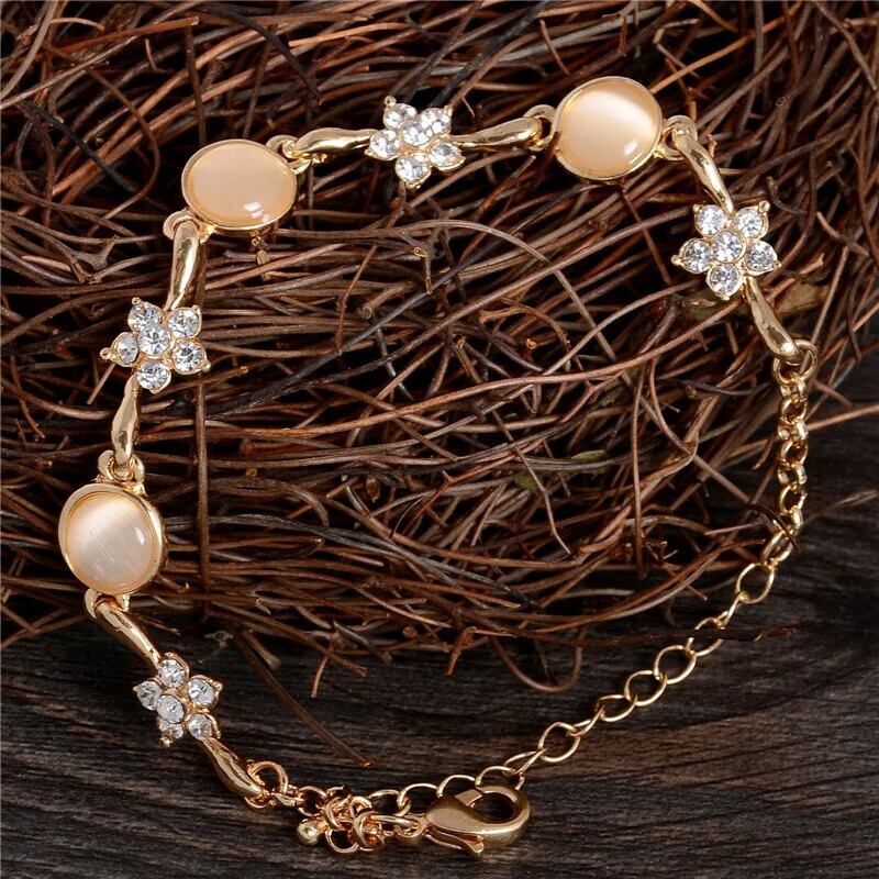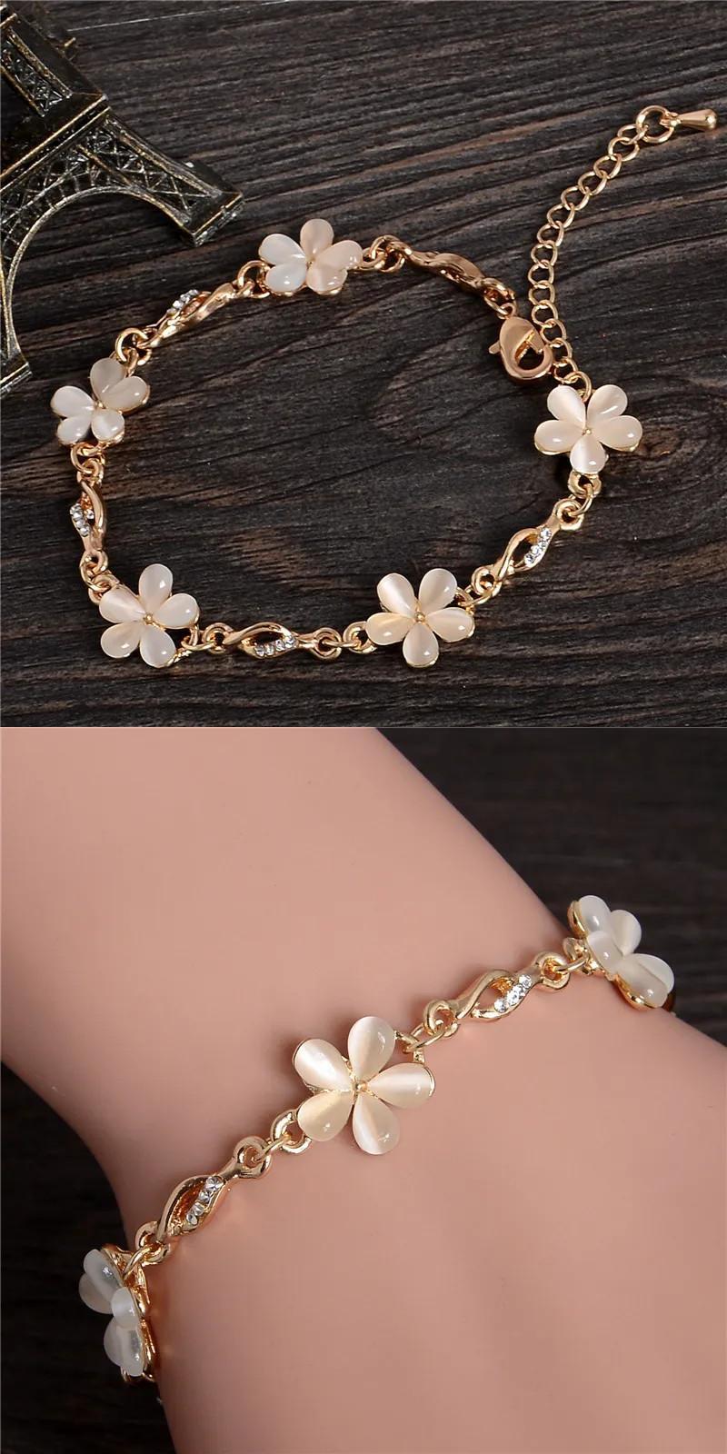 送料無料 繊細な小さな花飾りチェーンブレスレットガールチャーミングバンケットアクセサリー女性のオパールジュエリー 蛋白石 フラワーデザイン AE1556555551332286466