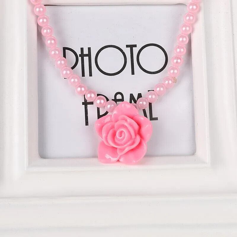 送料無料 模造パールジュエリーセット女の子子供フラワーペンダントネックレスブレスレットリングセット女の子ジュエリーギフト レース 指輪 真珠 フラワーデザイン AE1556555590390241516