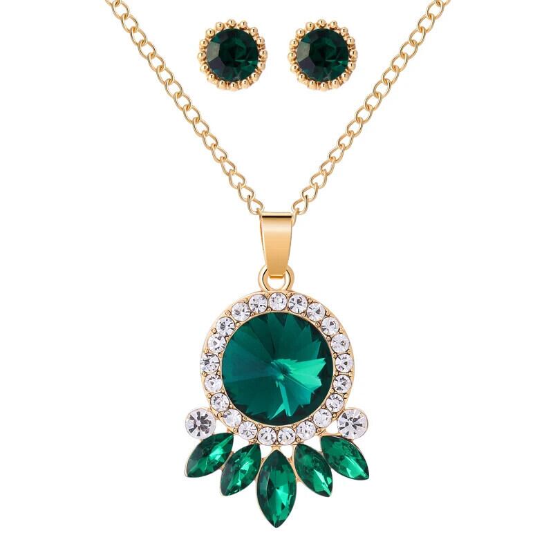 送料無料 ZOSHI ゴールドカラーペンダント & ネックレススタッドピアスカラフルな天然石キュービックジルコニアクリスタルロマンチックなブライダルジュエリーセット レース イヤリング ナチュラル リング 指輪 風信子石 AE1556555546475533847