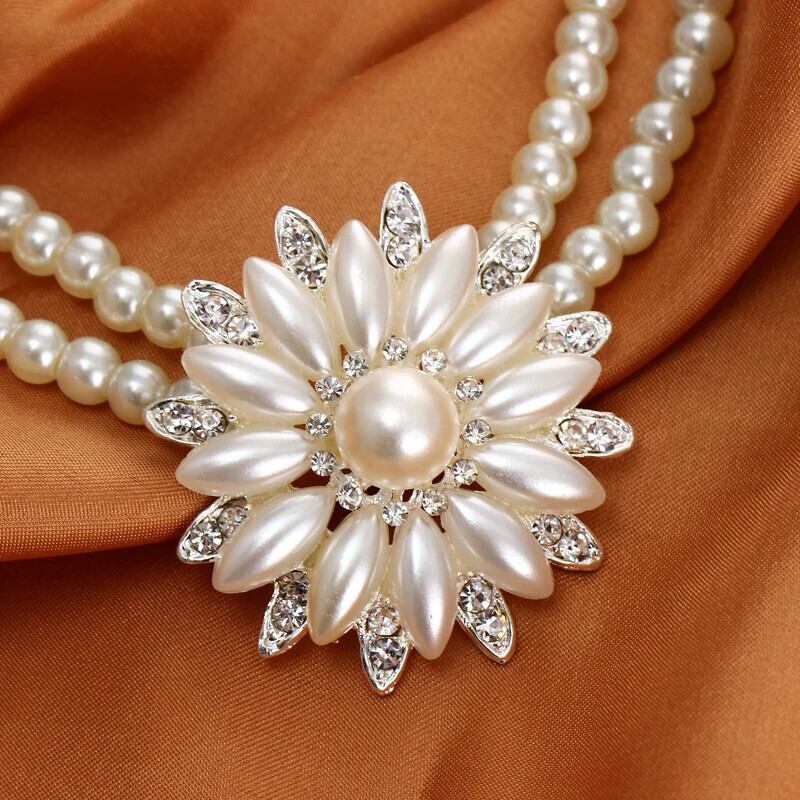 送料無料 チョーカーネックレスイヤリング模擬パールフラワージュエリーセット女性の結婚式のブライダルパーティーアクセサリー模造クリスタルペンダント レース 真珠 指輪 フラワーデザイン 人工 AE1556555528896331374