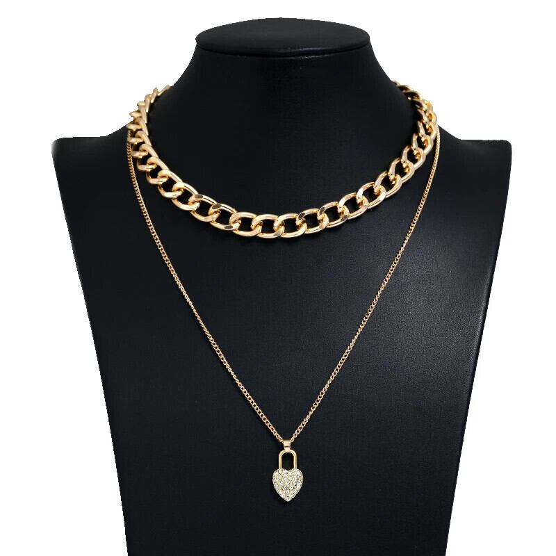送料無料 ZOSHI 多層ロックチェーンチョーカーネックレス女性ラブハートゴールドカラー分厚いネックレスパーティージュエリー レース AE1556555527721908129