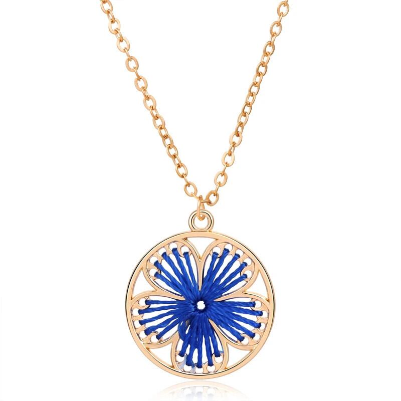 送料無料 カラフルな花のペンダントネックレス女性ゴールドカラーチェーンロングチェーンセーターネックレスジュエリーギフト レース フラワーデザイン AE1556555568852275057