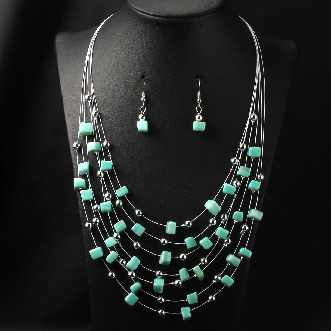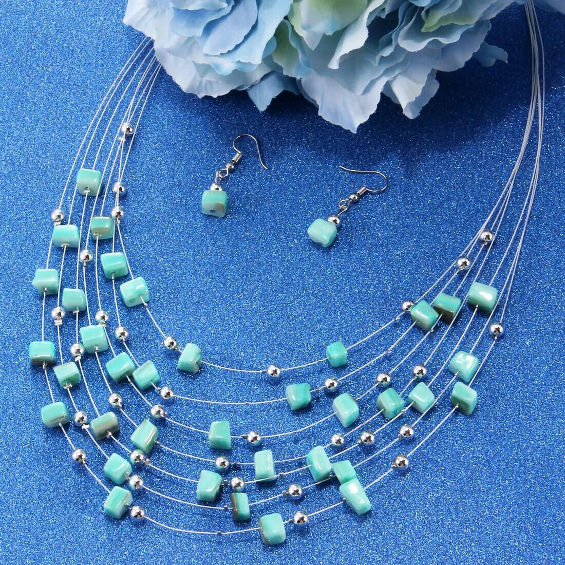 送料無料 クリスタルコーラルビーズシルバーメッキ Chcoker ネックレスイヤリングセットアフリカンジュエリーセット女性天然石ジュエリーセット レース ナチュラル 指輪 銀 AE1556555548023459046