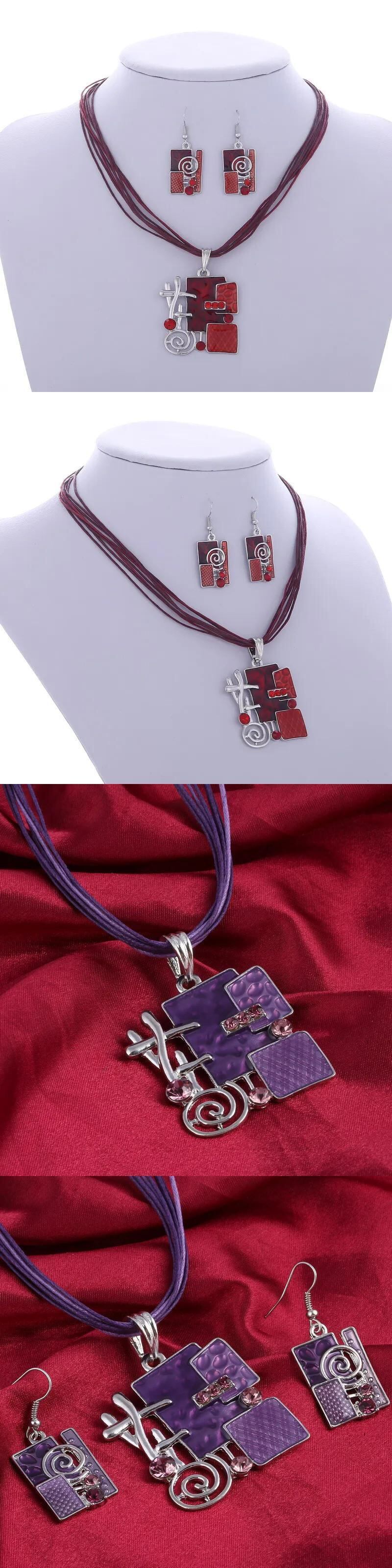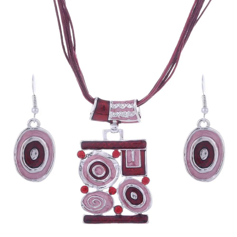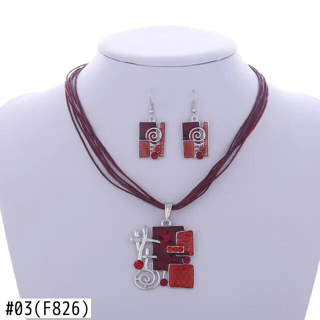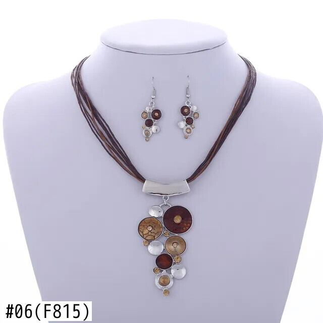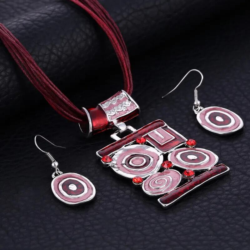 送料無料 エナメルジュエリーセット繊細なレザーロープペンダントジオメトリチョーカーネックレスイヤリングセットボヘミアンジュエリーセット レース 指輪 AE1556555515480197046