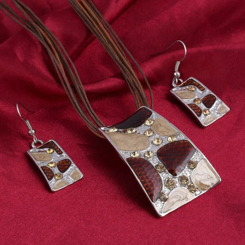 送料無料 ZOSHI Clic 幾何学的なスクエアペンダントジュエリーセット女性ヴィンテージネックレスイヤリングセットパーティージュエリーギフト レース 指輪 スクウェア ビンテージ AE1556555589025681619