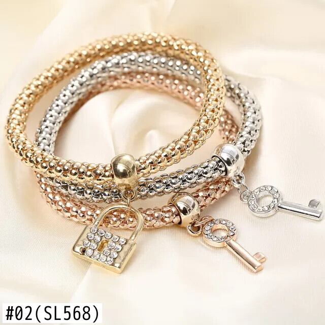 送料無料 ZOSHI 3 ピース/セットクリスタルラブハートチャームブレスレット女性ゴールドメッキフクロウ象ペンダントブレスレットセットパーティージュエリー AE1556555585965199718