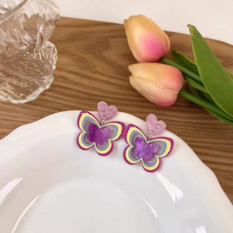 送料無料 2023 クリエイティブスウィートピンクピーチハート蝶ペンダントスタッドピアス女性誇張楽しい甘いクールガールズジュエリー イヤリング 大人ガーリー キュート カジュアル リング 指輪 AE12776767732587313534