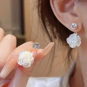 送料無料 レトロジルコンまばゆい椿ペンダントスタッドピアス女性クリエイティブライト高級絶妙なエンドイヤリング 指輪 AE12776767727702464011