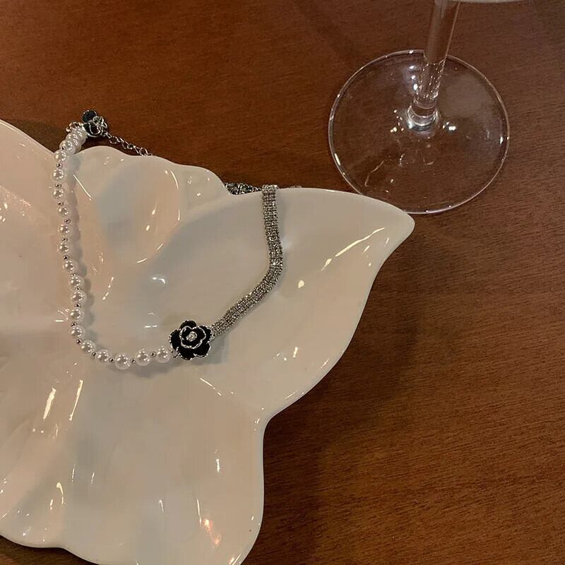 送料無料 バージョン椿の花パールネックレス女性高度な気質首輪模造パールビーズネックレスジュエリーギフト レース 真珠 フラワーデザイン AE12776767720941142522