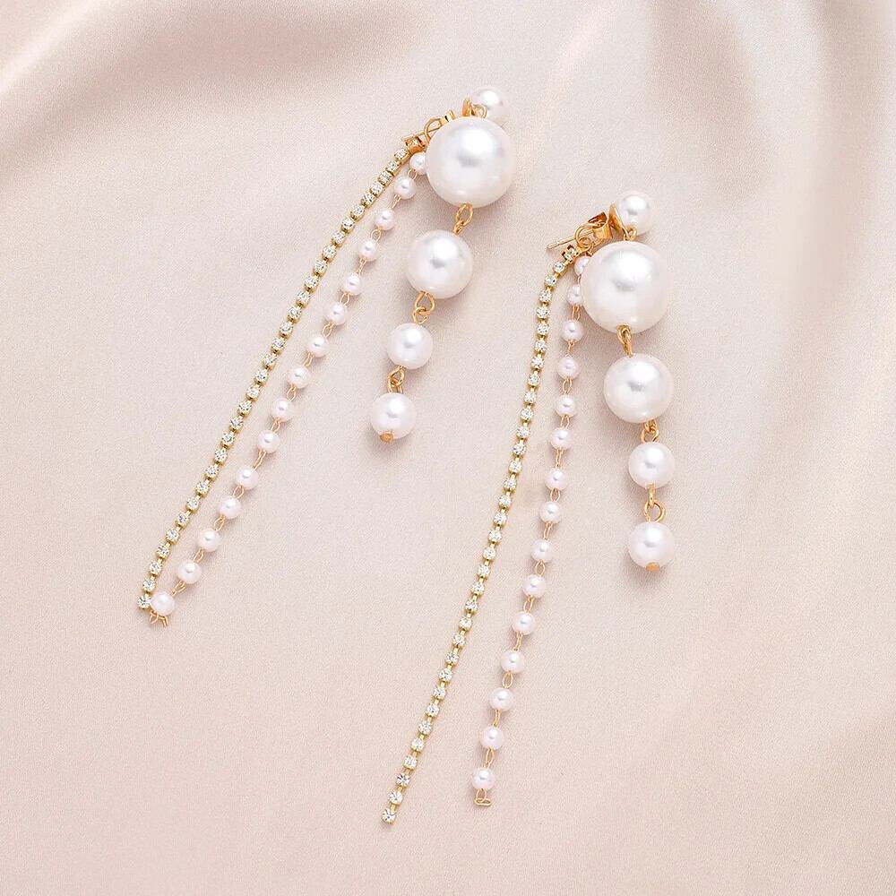 送料無料 多層模造パールイヤリング気質甘い絶妙なラインストーンフリンジイヤリングパーティージュエリーギフト 大人ガーリー スウィート キュート カジュアル マルチレイヤー 真珠 指輪 AE12776767781190023654