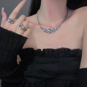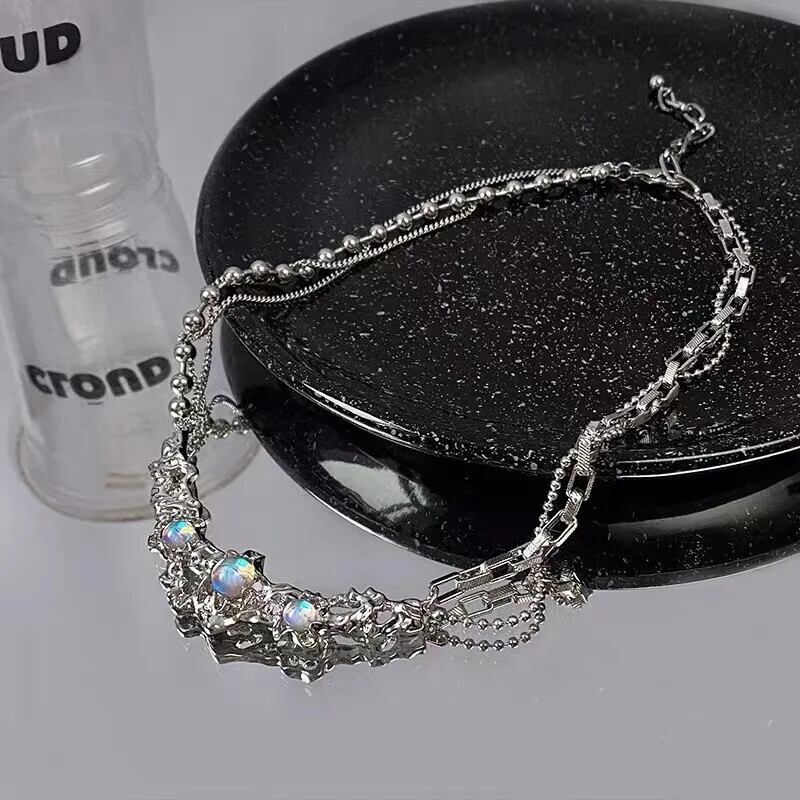 送料無料 高貴なオパール宝石ネックレス女性アンビライトムーンストーンステンレス鋼の首輪気質鎖骨チェーンジュエリー レース 蛋白石 AE12776767750370642933