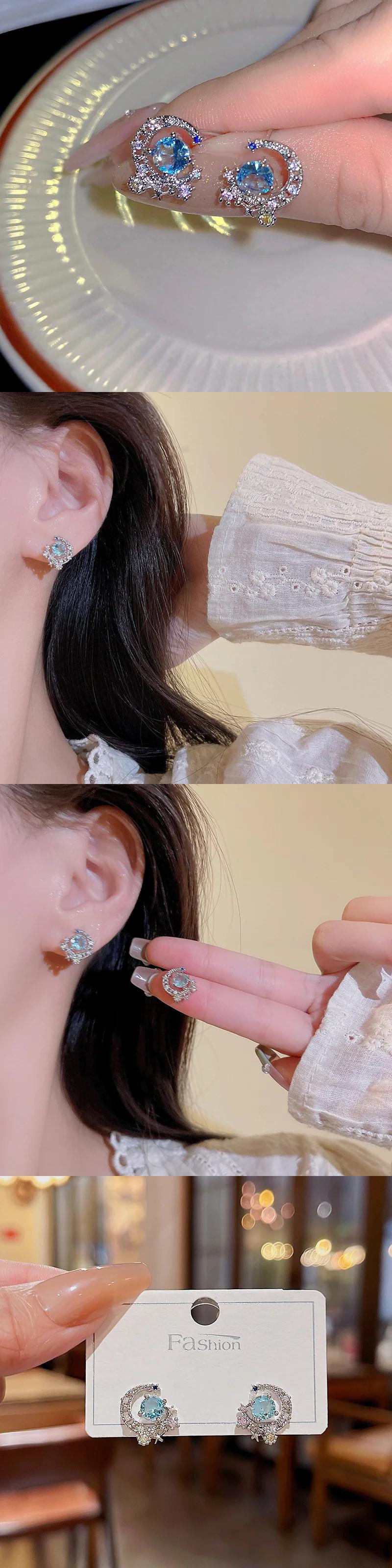送料無料 ブルージルコンスタッドピアス女性スタームーンシルバー絶妙な気質イヤリングパーティーガールズ珍しいアクセサリー 指輪 銀 AE12776767784186611675