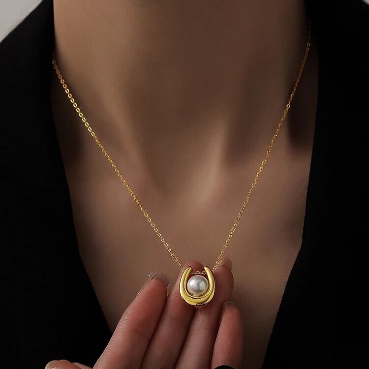 送料無料 2023 トレンド絶妙な U 字型パールチタン鋼ネックレスパールネックレス多用途ネックレス レース 真珠 AE12776767796115919483
