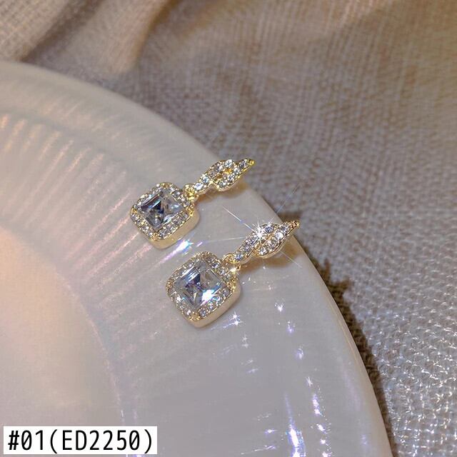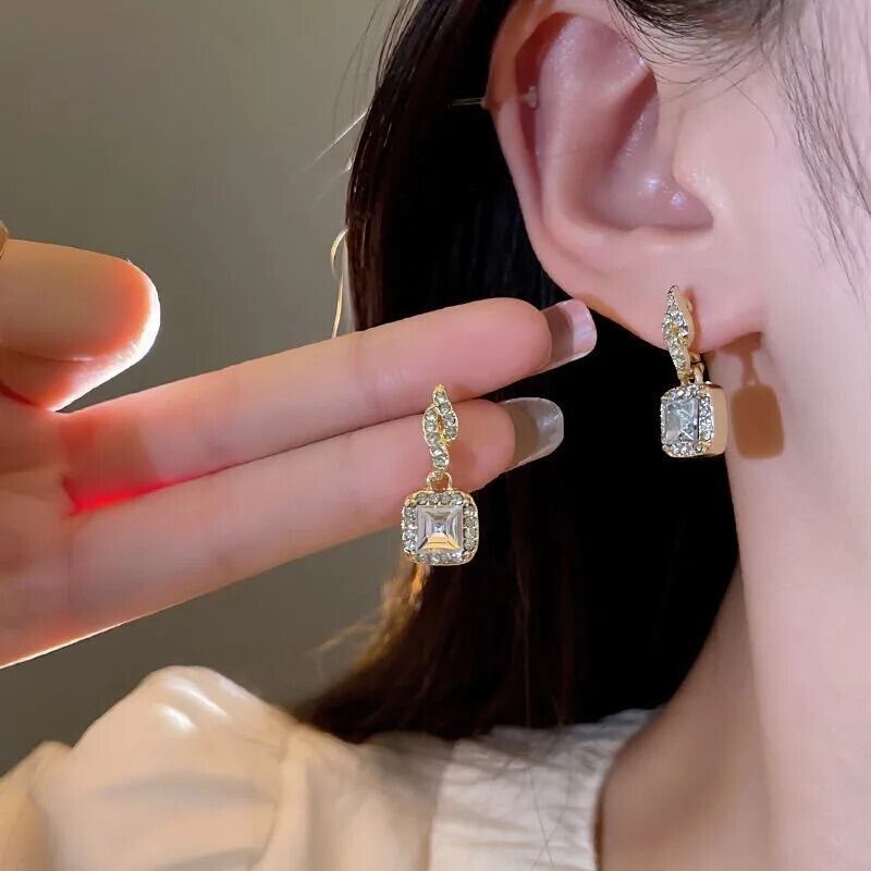 送料無料 絶妙な光沢のあるジルコン菱形イヤリングゴールドカラーの豪華なイヤリングガールズジュエリーパーティープレミアムギフト 指輪 AE1277676778704117378