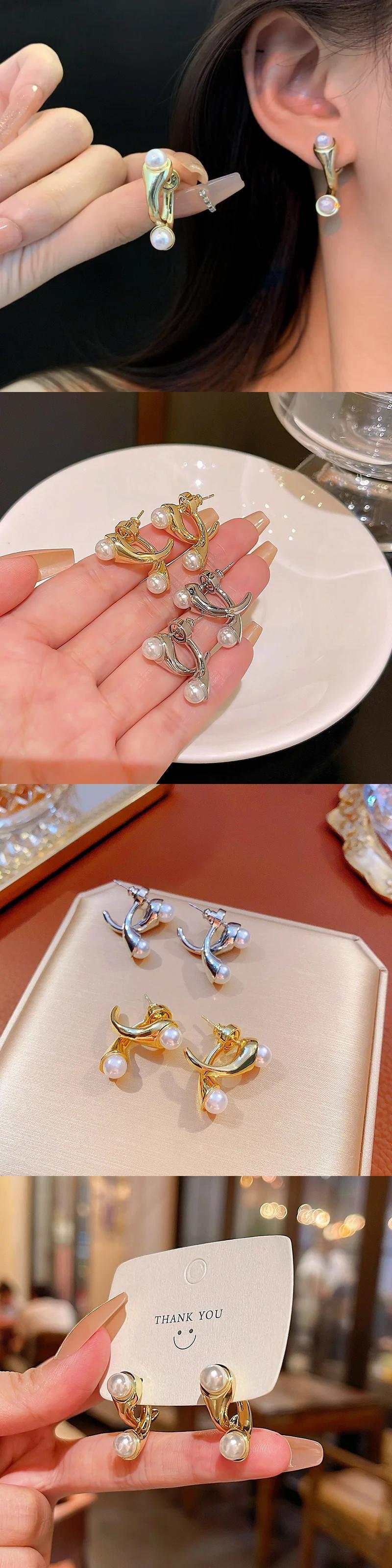 送料無料 クロスバックぶら下げパールスタッドピアス女性不規則なユニークな気質イヤリングパーティーガールズ珍しいアクセサリー 真珠 指輪 AE12776767716283479321