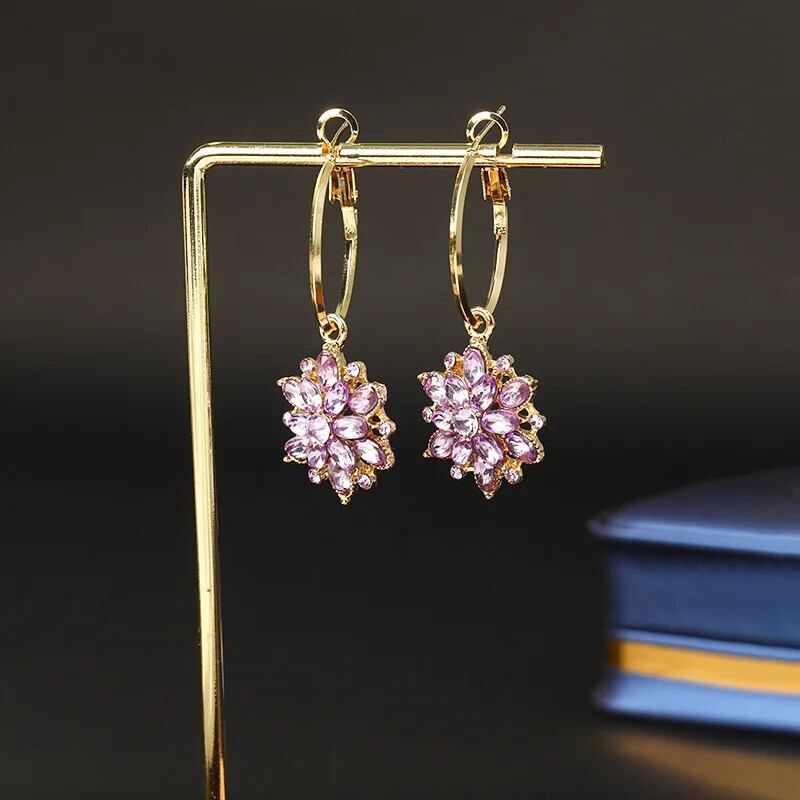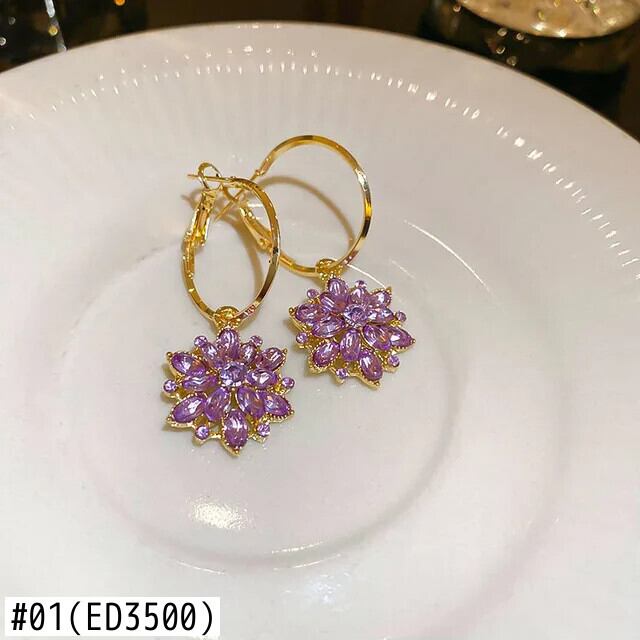 送料無料 高級ジオメトリパープルジルコンクリスタルスタッドピアス女性フルラインストーンフラワー絶妙なイヤリングパーティーウェディングシックなジュエラー 指輪 フラワーデザイン AE12776767741800303185