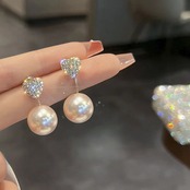 送料無料 ジルコンハート形の真珠のペンダントスタッドピアス女性の気質スイートとテルイヤリング 2023 トレンドジュエリーギフト 大人ガーリー スウィート キュート カジュアル パール 指輪 AE12776767797203289647