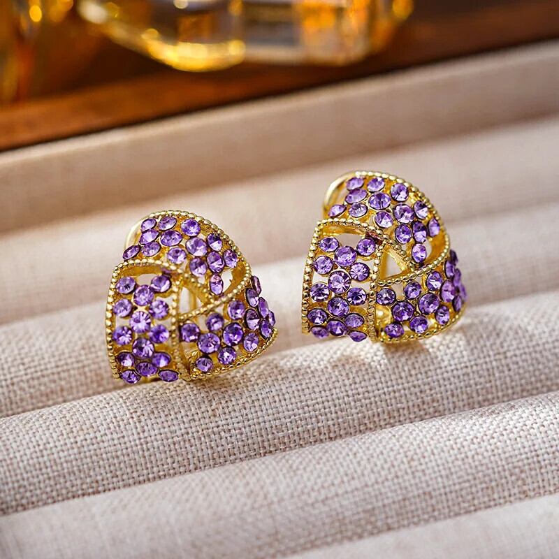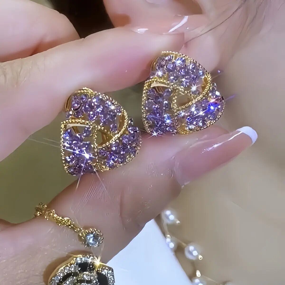 送料無料 2024 絶妙なパープルジルコン小さな三角形耳スタッド女性幾何学的なパールハートシェイプイヤリングパーティージュエリー G 真珠 指輪 AE12776767798417382744