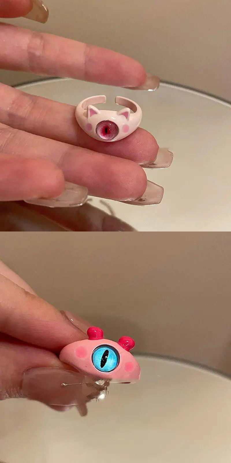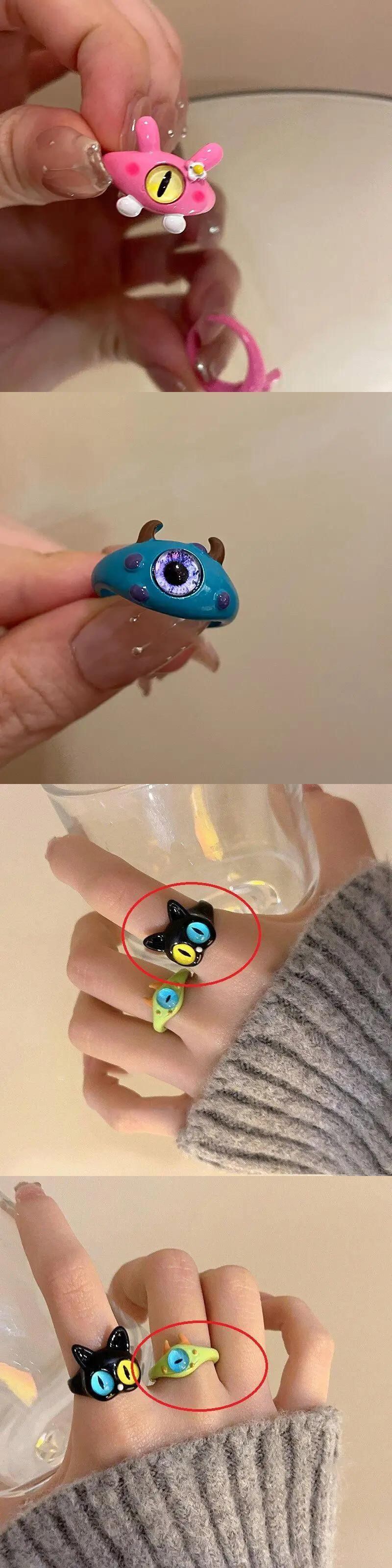 送料無料 2023 かわいいグリーンモンスターリング女性甘い 2 色猫の目オープンカップルリング結婚式の指のアクセサリージュエリー 大人ガーリー スウィート キュート カジュアル 指輪 AE12776767715059982078