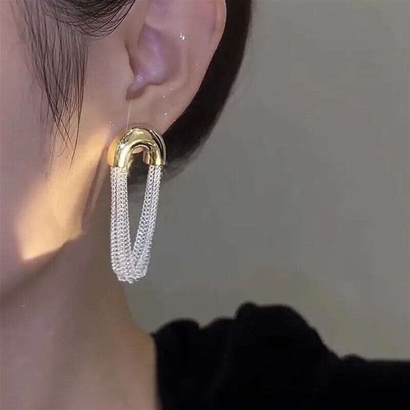 送料無料 2023 ゴールドカラー半円形チェーン電話イヤリング女性の高級気質ガールズジュエリーパーティープレミアムギフト 指輪 AE12776767759117788797