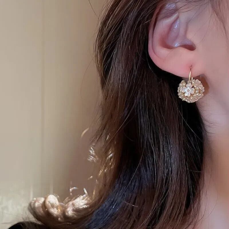 送料無料 2023 トレンド絶妙なホワイトラインストーンフラワーボールイヤリング女性の気質甘くてロマンチックなゴールドカラーイヤリング 大人ガーリー スウィート キュート カジュアル 指輪 フラワーデザイン AE1277676775078095537