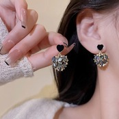 送料無料 絶妙な光沢のある黒のラインストーンハートイヤリング女性黄金の気質ロマンチックなパーティーの誕生日ギフトチャームジュエリー ブラック 指輪 AE12776767720075160103