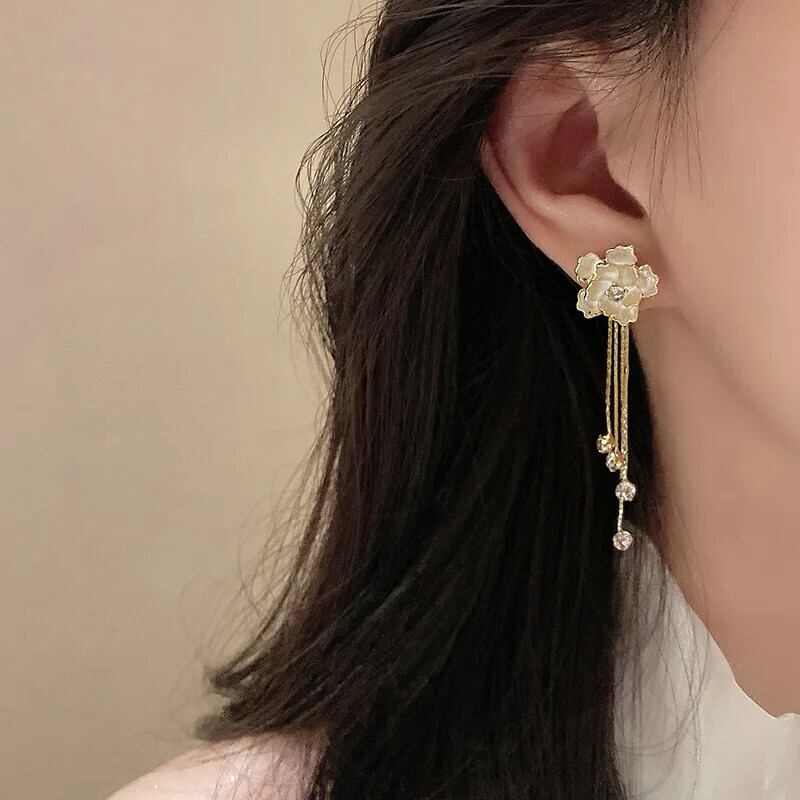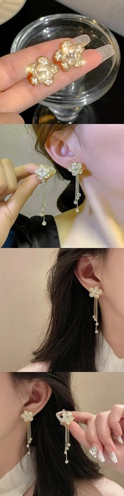 送料無料 2023 椿ジルコンゴールドカラー電話ロングスタッドピアスシンプルな気質甘いイヤリングジュエリープレミアムギフト 大人ガーリー スウィート キュート カジュアル 指輪 AE12776767789696416273