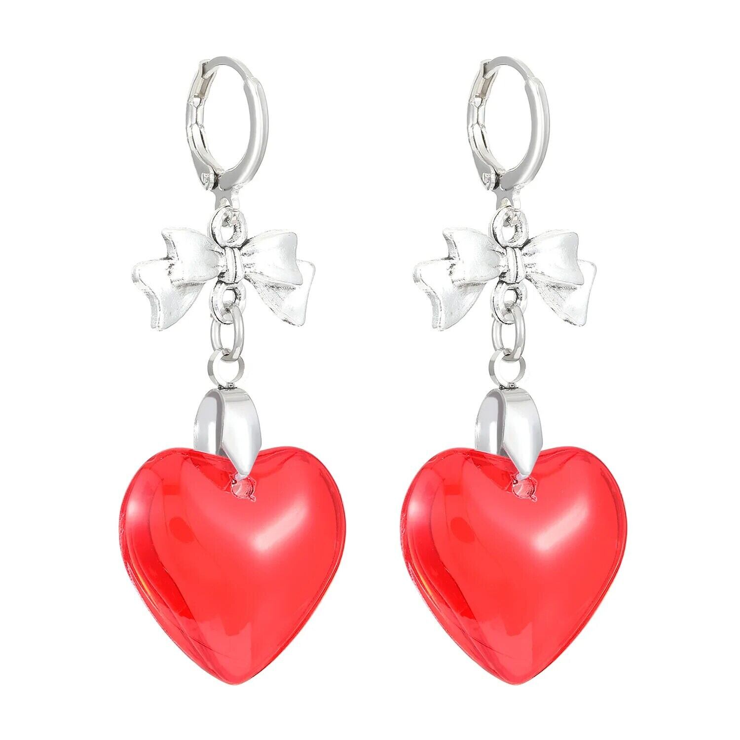 送料無料 ピンククリスタルハートブラブライヤリング 2024 弓イヤリングロマンチックな女の子の女性パーティージュエリー リボン 指輪 AE1277676778648392028