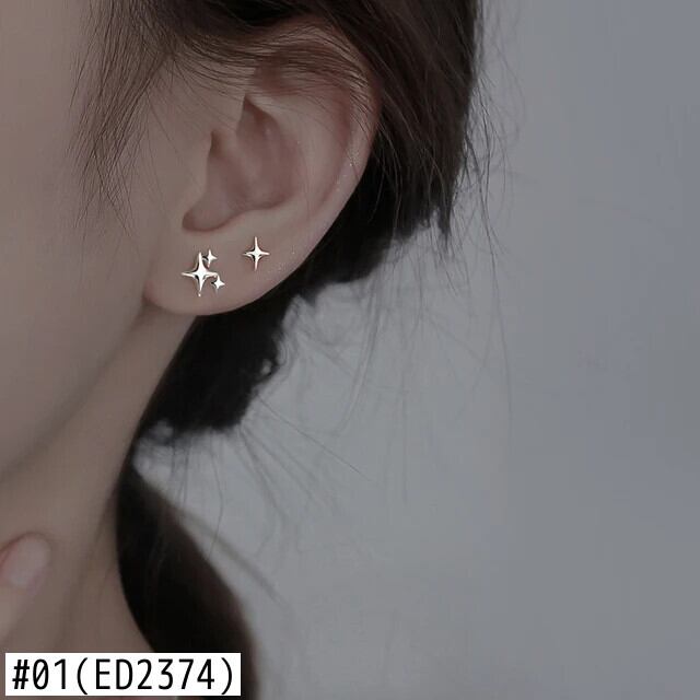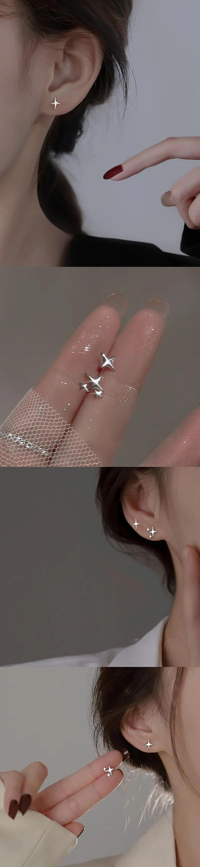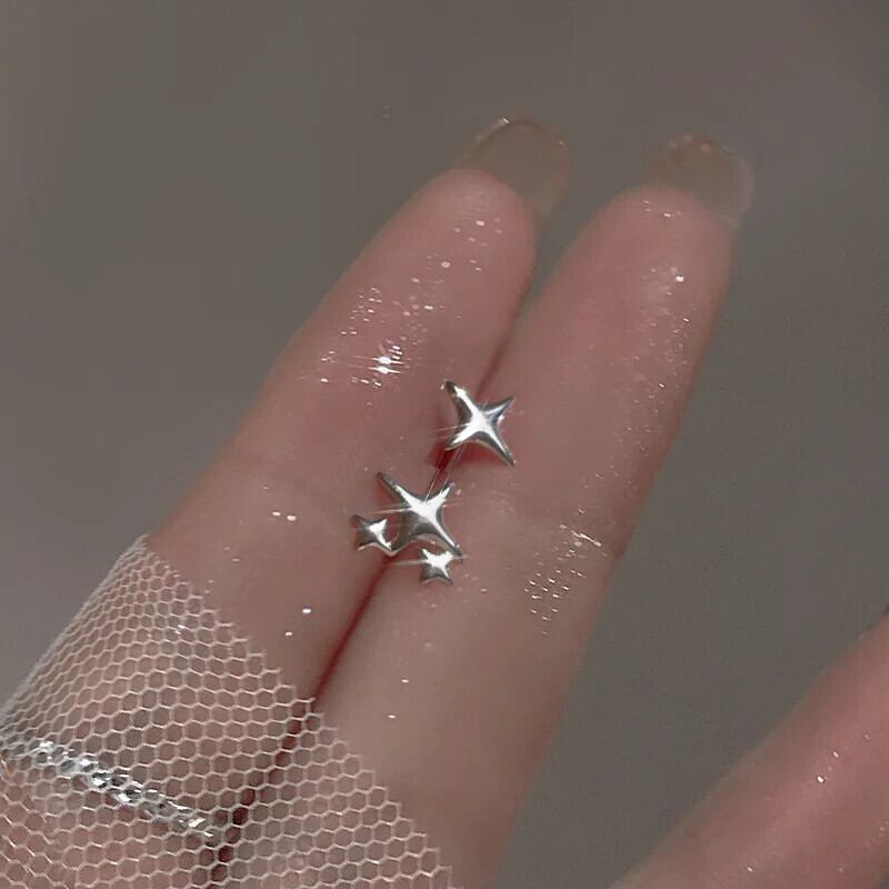 送料無料 トレンドシルバーカラーのシンプルな非対称四芒星スタッドピアス女性アクセサリーパーティージュエリー誕生日ギフト イヤリング リング 指輪 銀 AE1277676774874114612