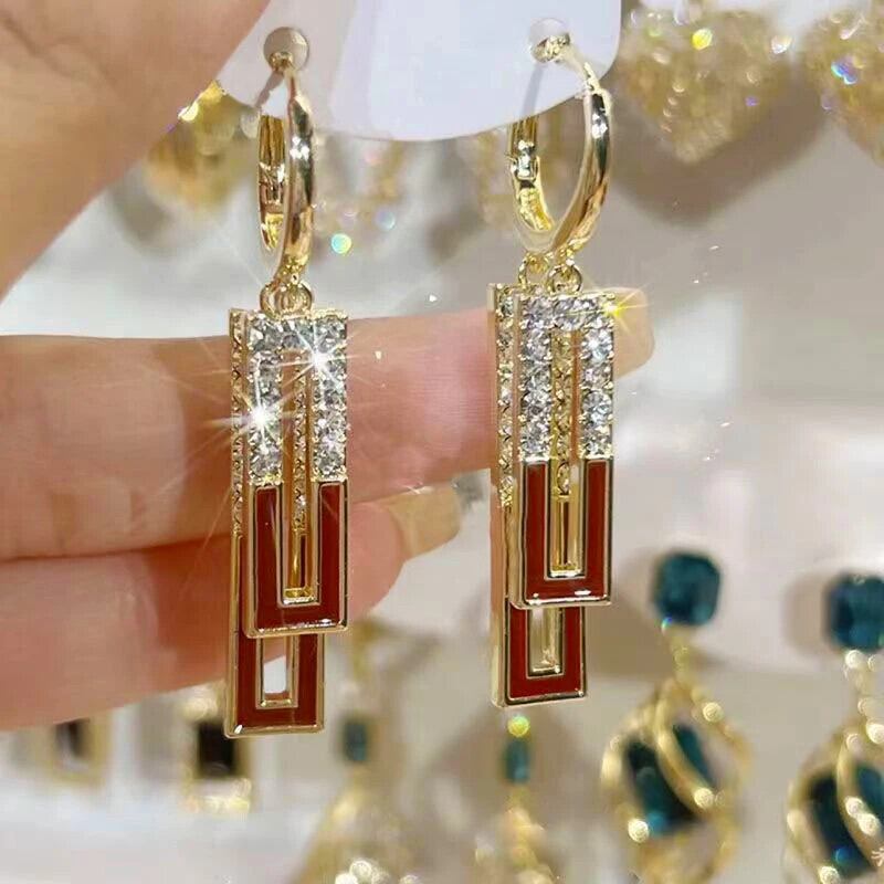 送料無料 ホワイトスクエアラインストーンジルコンダブルペンダントゴールドカラーイヤリング女性ユニークなガールズトレンドジュエリーギフト 指輪 スクウェア AE12776767714594459522