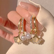 送料無料 2024 ジルコンボウノットラウンドパールペンダントゴールドカラー幾何学形状イヤリング女性繊細な甘いガールズパーティーユダヤ人 リボン 大人ガーリー スウィート キュート カジュアル 真珠 指輪 AE12776767764138058725