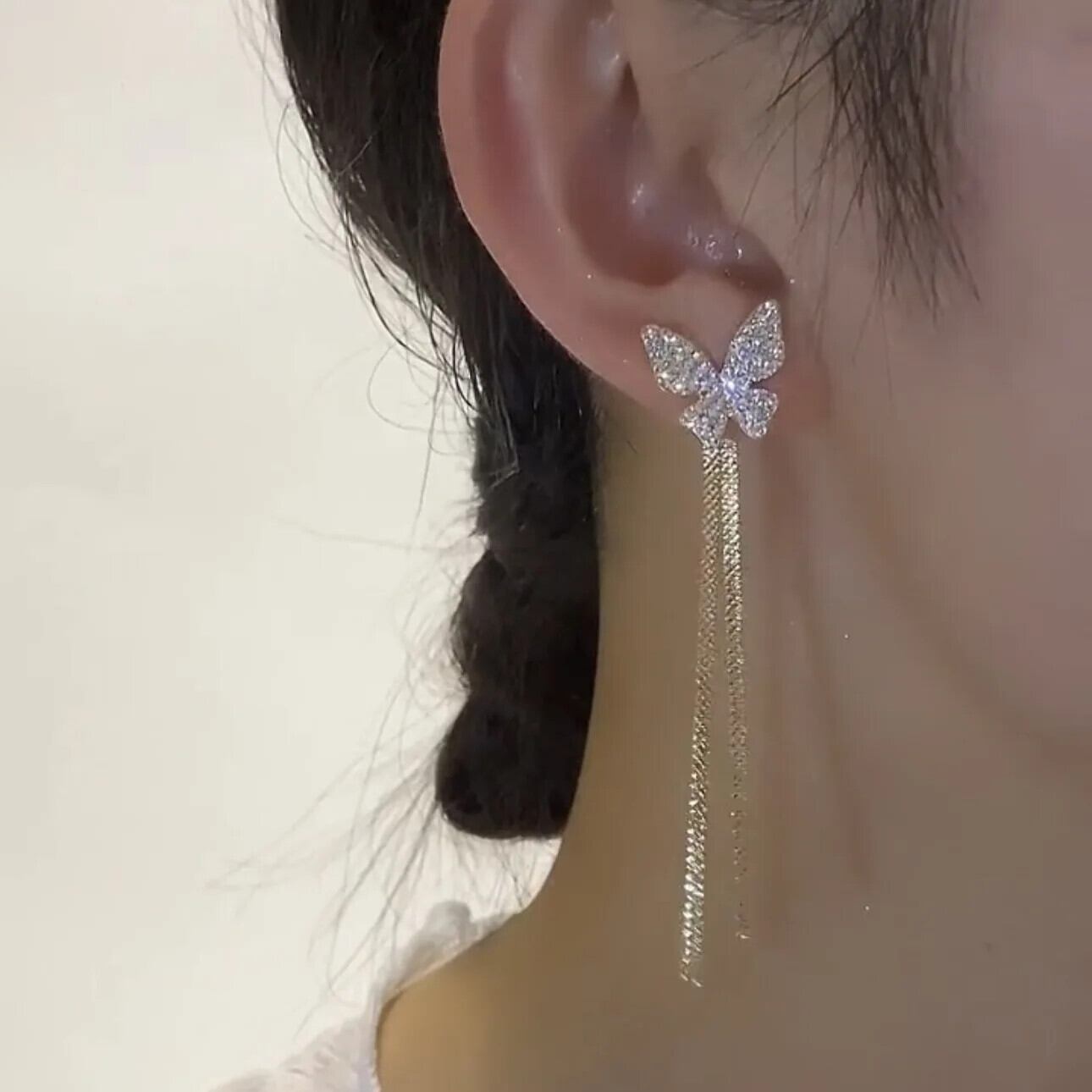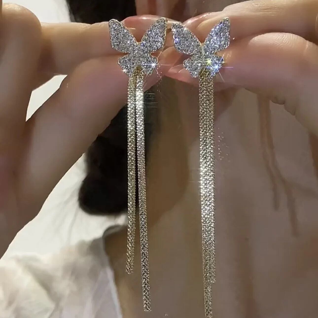 送料無料 ジルコンがちりばめられた蝶ゴールデン Tel イヤリング女性パーソナライズされたデイリーアクセサリーパーティージュエリー 指輪 AE12776767786573470962