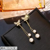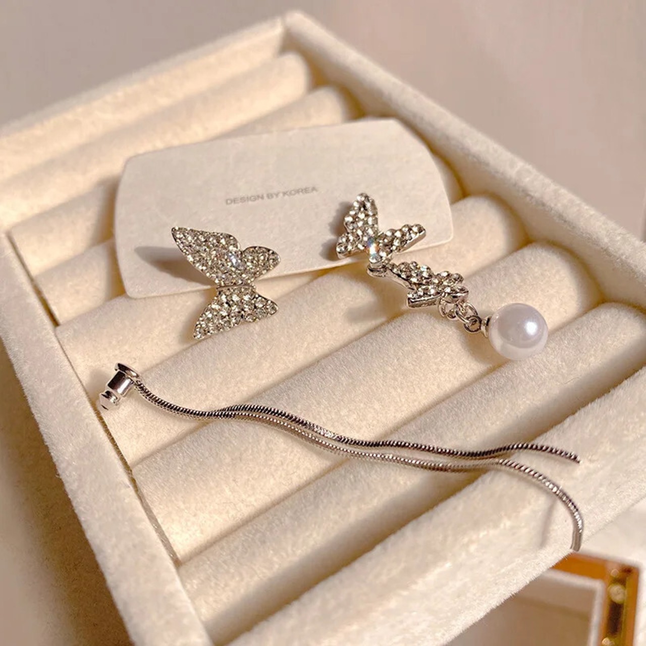 送料無料 シルバーカラー非対称ジルコン蝶ロング電話チェーンパールペンダントスタッドピアス女性繊細なジュエリーギフト イヤリング 真珠 リング 指輪 銀 AE12776767719500118881