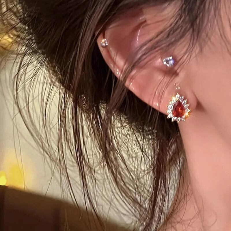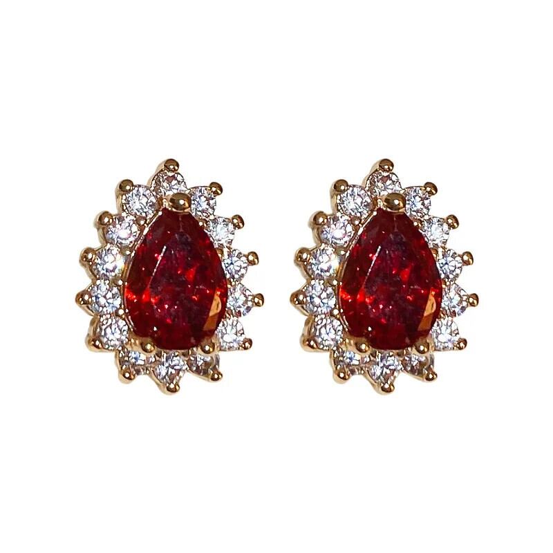 送料無料 絶妙な気質イヤリング女性ラウンドレッドナチュラルジルコンアクセサリー花嫁の結婚式の宝石類のギフト 天然 AE1277676775938122249